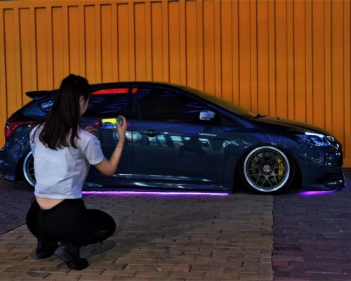 AIRBFTsuspension air suspension modification website:Ford Focus MK3 Bagged attitude display. Ford Focus is a very ordinary family car, but there is no distinction between high and low in the modification industry. The main thing is that you can modify it if you like it. Today I will share with you a female player from Inner Mongolia who modified her Focus into her own My favorite appearance, the chassis lighting is matched with the AIRBFT air suspension low profile, the effect is superb, and anyone who sees it will give a thumbs up.